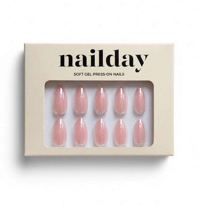 Optie B – Lijm: Breng een dun laagje lijm aan op de natural nagel én op de underside van de press-on; plaats op 45° angle bij de nagelriem, druk aan en houd ~60 seconden goed vast. - Finish & verzorging