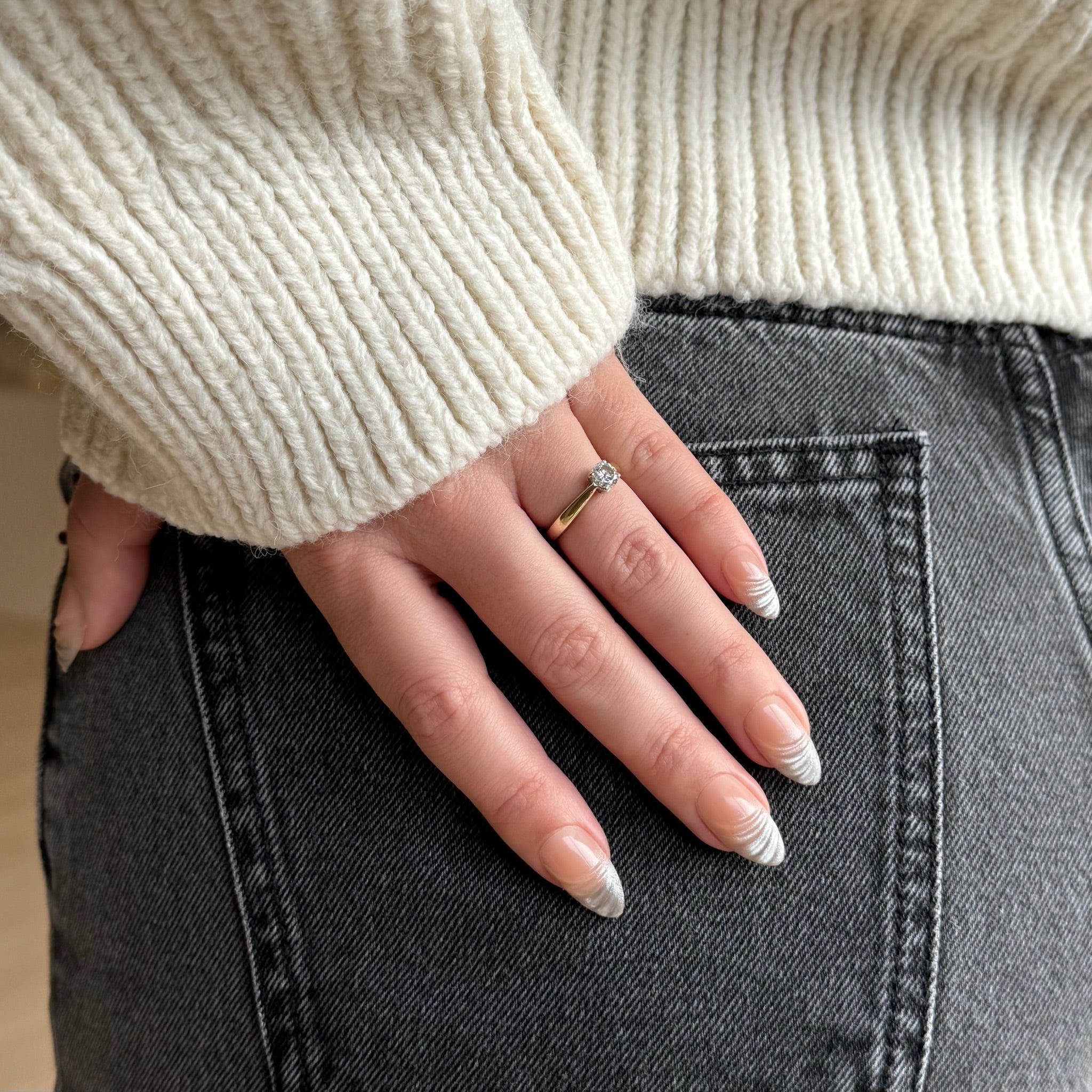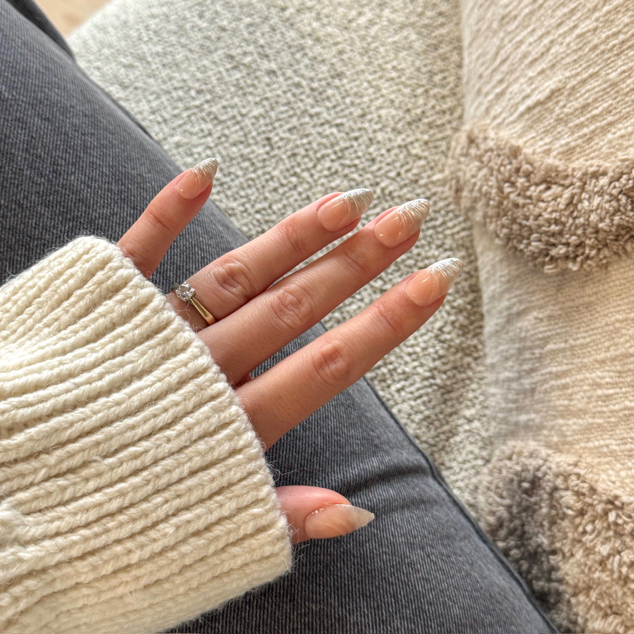 Optie B – Lijm: Breng een dun laagje lijm aan op de natural nagel én op de underside van de press-on; plaats op 45° angle bij de nagelriem, druk aan en houd ~60 seconden goed vast. - Finish & verzorging