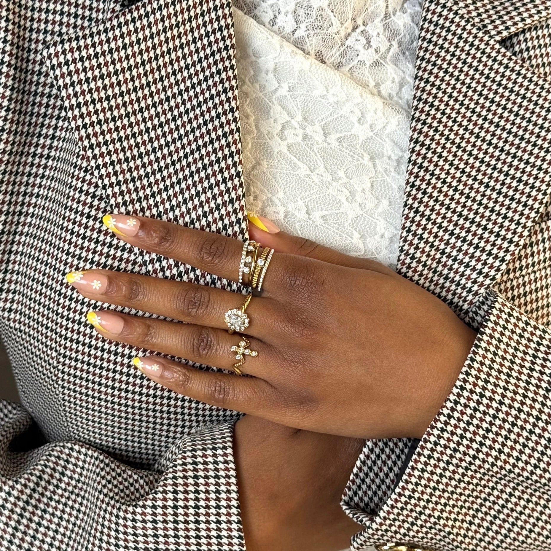 Selecteer voor elke vinger de press-on nagel die het beste past. Zit hij iets te wijd? Vijl dan lichtjes de zijkanten voor een perfect fit. - Aanbrengen met sticky tabs of lijm