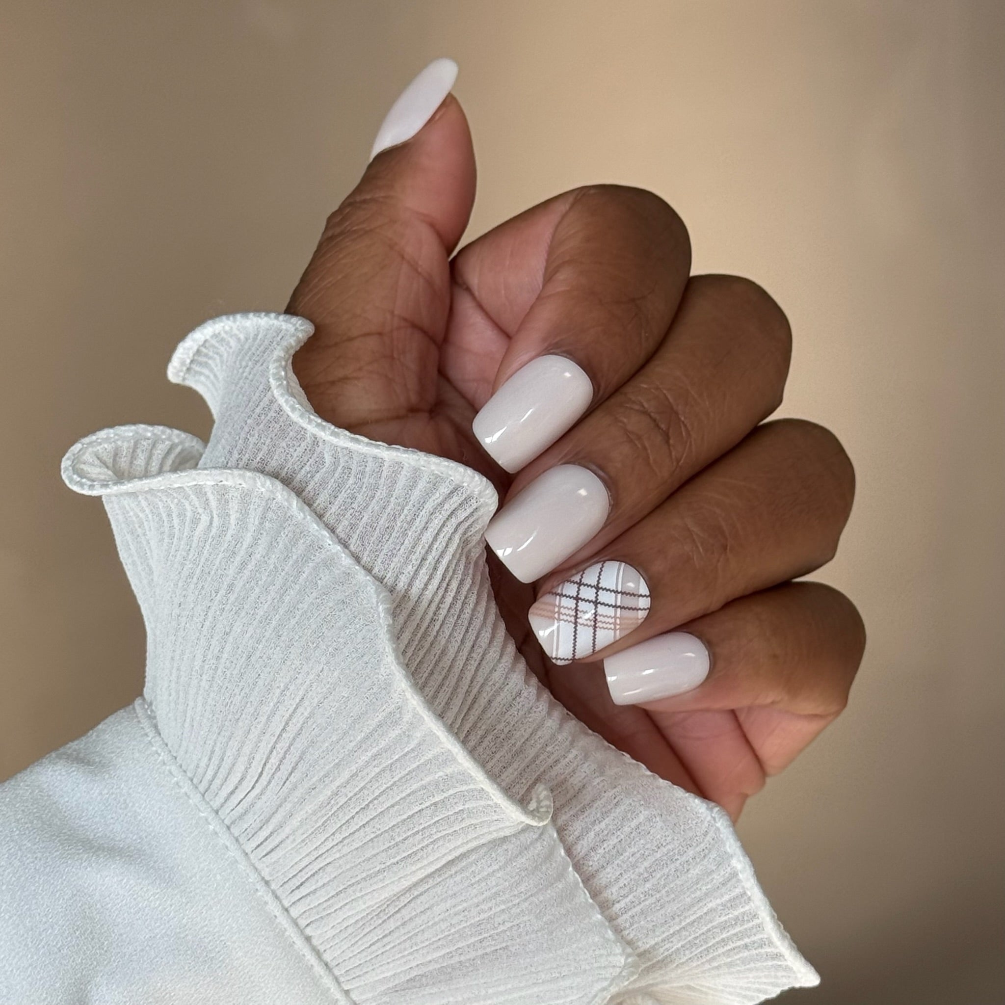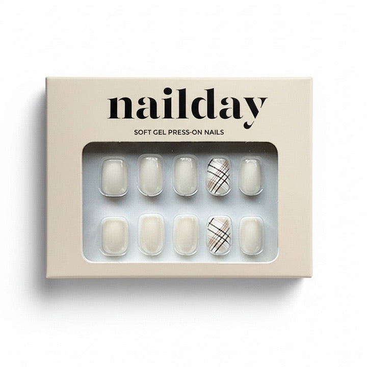 Check It is een off-white manicure in short square vorm met subtiele check prints als detail.