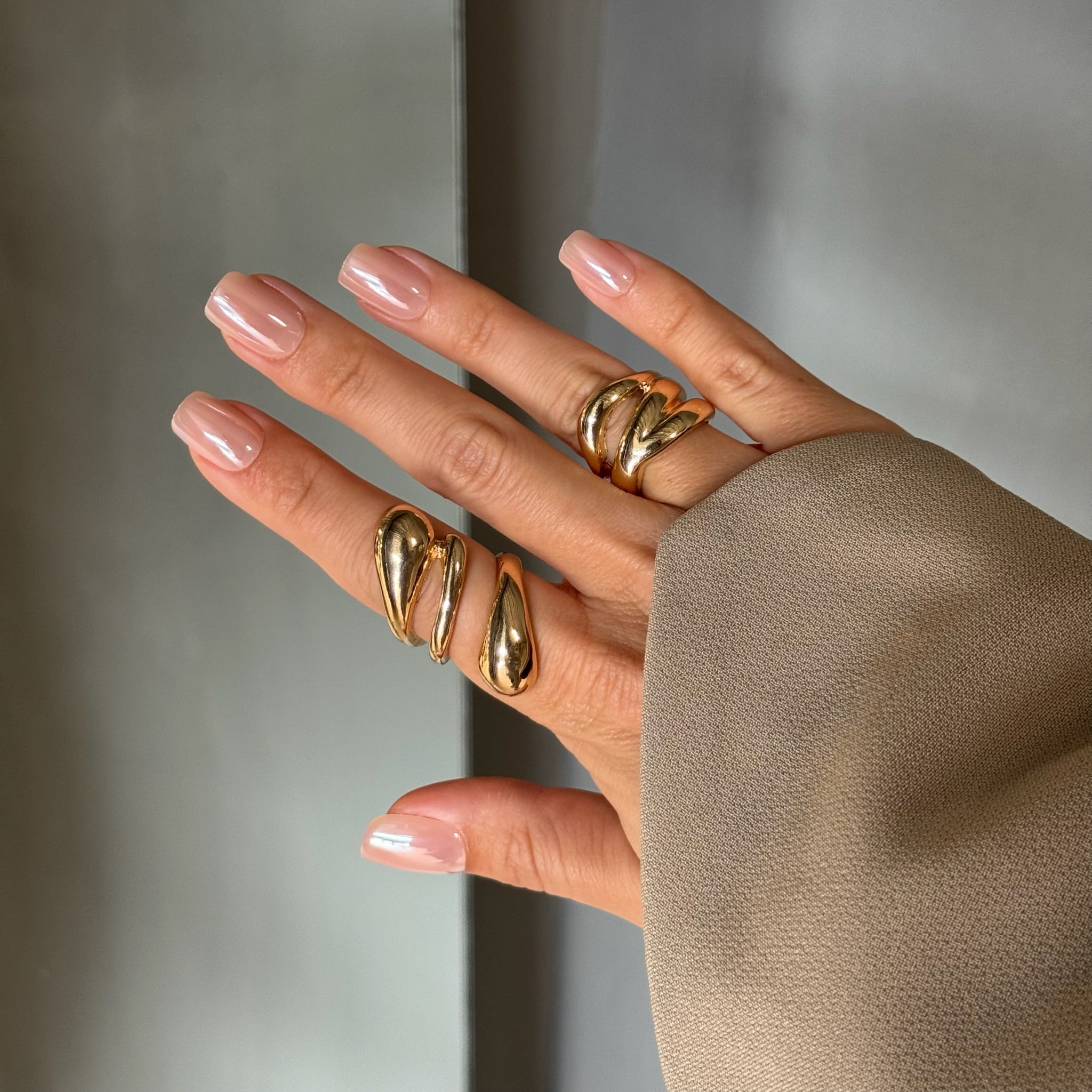 Glow Getter is een short square set met een transparant-roze glass effect dat je nagels een glossy, verzorgde uitstraling geeft. De kleur is zacht en neutraal, perfect voor elke gelegenheid.